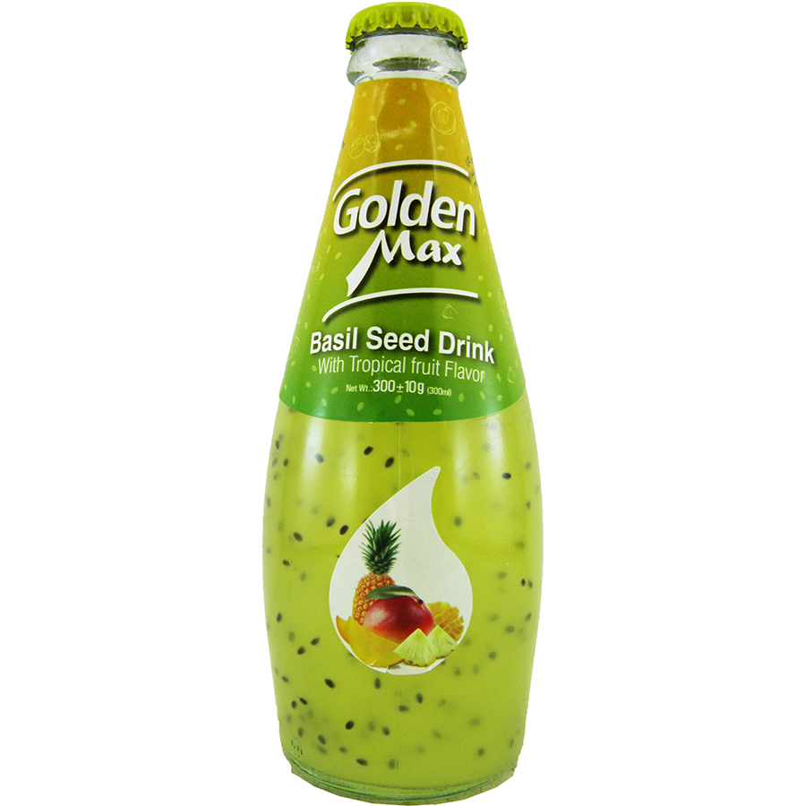 نوشیدنی تخم شربتی با طعم میوه های استوایی ظرف شیشه ای 300 ml نام تجارتی گلدن مکس مرجع عرضه کننده سعی