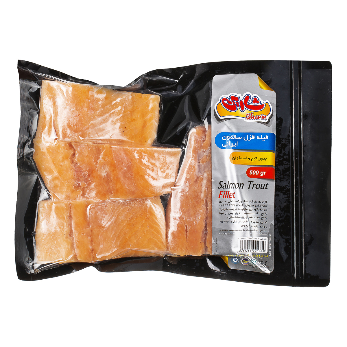 گوشت فیله شده ماهی قزل آلا سالمون پاکت وکیومی 500 g نام تجارتی شارین مرجع عرضه کننده سعید محمدی