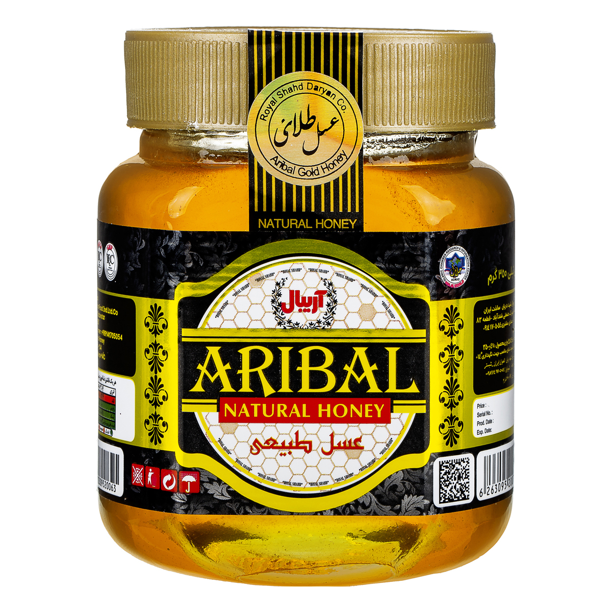 عسل طلایی ظرف شیشه ای 350 g نام تجارتی آریبال مرجع عرضه کننده رویال شهد دریان